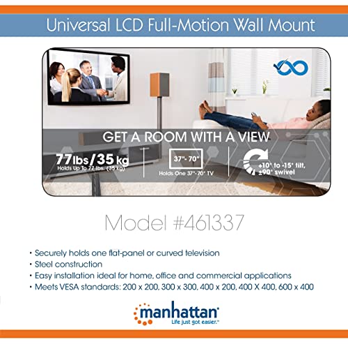 Manhattan 461337 70" Black flat panel wall mount - Flat Panel Wall Mounts (35 kg, 94 cm (37"), 177.8 cm (70"), 200 x 200 mm, 600 x 400 mm, Black)