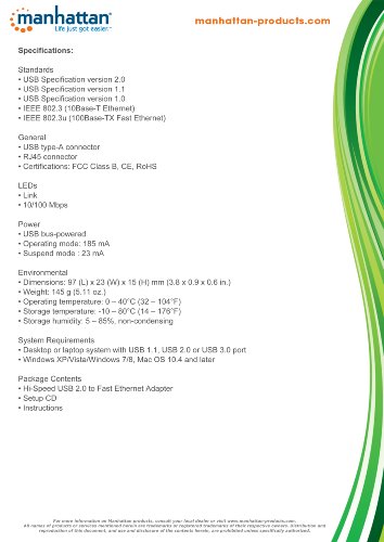 Manhattan Hi-Speed USB 2.0 to Fast Ethernet Adapter - Netzwerkadapter - USB 2.0 - 10/100 Ethernet - weiß