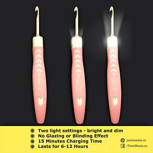 DYZ principale ricaricabile luce: terza generazione uncinetti accese con migliorata tecnologia a LED, fornendo forte e concentrare la luce senza vetri e effetto abbagliante, a differenza della precedente precedente. uncinetto aiyana impiega 30 minuti per caricare e dura per 6-12 ore