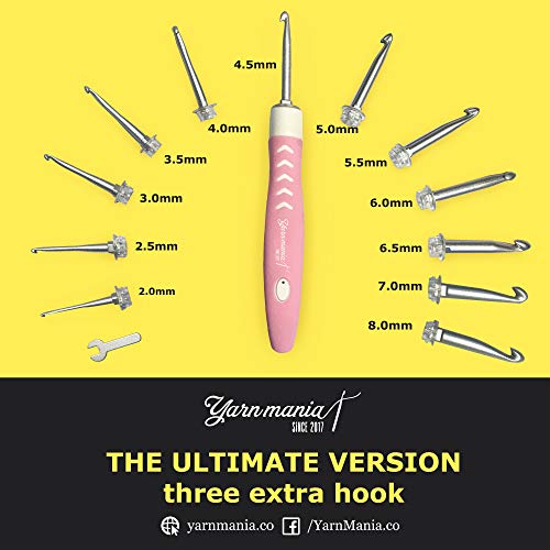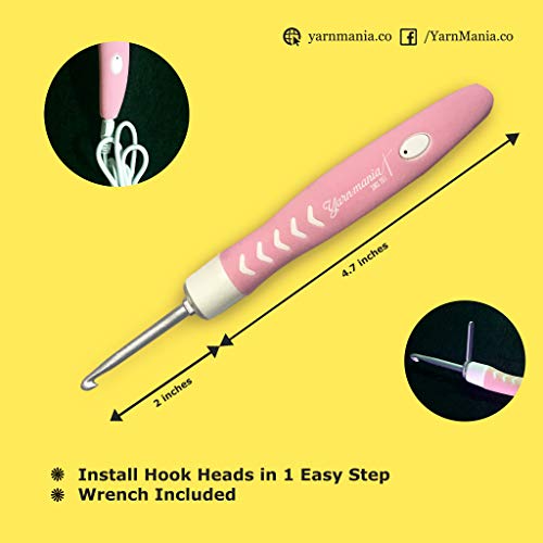Yarn Mania Uncinetti luminosi con teste intercambiabili in alluminio con forma curva ergonomica e impugnatura morbida 6 Misure 2,5-6,5 mm Light Pink finale