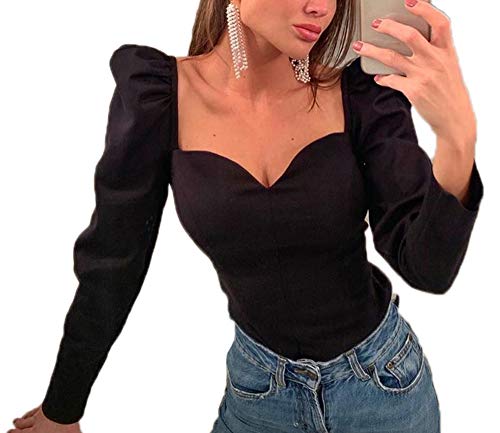 Stagione: la camicia a maniche lunghe da donna è progettata sia per la primavera che per l'autunno. Con il design della manica a sbuffo e il collo quadrato, la nostra camicia è abbastanza elegante e unica per la tua vita quotidiana.