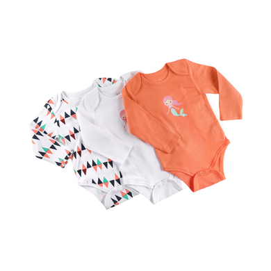 Pink or blue - il marchio per i primi abiti del tuo bambino La prima volta con un neonato è meravigliosa, emozionante ed estenuante allo stesso tempo. Ciò di cui il tuo bambino ha bisogno ora è amore in abbondanza, sicurezza e attenzione.... per tutto il resto, ora puoi ottenere abbigliamento progettato con amore dal marchio pink or blue . Lo sviluppo di un bambino, specialmente nei primi 24 mesi, è eccitante, rapido e sorprendente. I nostri esperti hanno sviluppato per voi molti bei prodotti che rendono la vita con il vostro piccolo tesoro più facile e piacevole. In breve - l'attrezzatura completa e spensierata per i più piccoli. Oltre a molti dettagli pratici ed esclusivi Design s, la qualità dei prodotti è soprattutto in primo piano. Le qualità certificate Ökotex in cotone morbido e coccoloso sono utilizzate per la pelle delicata del bambino. I materiali dimensionalmente stabili resistono a molti lavaggi e rimangono delicati sulla pelle del bambino. Con i primi abiti di pink or blue potete fare in modo che il vostro bambino si senta completamente a suo agio e, naturalmente, a prezzi equi. La moda di marca non deve essere costosa, guarda tu stesso nel nostro negozio online! Bella confezione di 3 body in morbido cotone biologico con maniche lunghe. Un body è stampato con un simpatico motivo geometrico, gli altri due body sono stampati con una sirena nella zona del petto. I bottoni a pressione nella zona del pannolino rendono facile mettere e togliere il tuo preferito. Dettagli del prodotto: Materiale: 100% cotone organico In una confezione da 3 Maniche lunghe Diversi Design s Bottoni a pressione nel cavallo Dettagli della cura: Lavabile fino a 60°C Asciugabiancheria Ferro moderatamente caldo