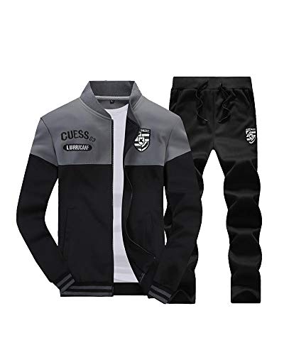 Uomo Manica Lunga Verticale Collo Tinta Unita Jogging Sportiva Felpa E Pantaloni 2 Pezzi Tute Grigio XXL