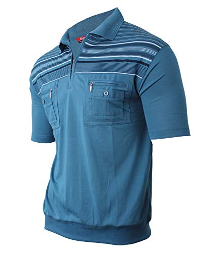 Humy - Polo da uomo a maniche corte, con colletto, a righe, con tasca sul petto, in misto cotone (taglie da M a 3XL), [C] blu oceano., M