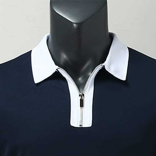 Polo da uomo a maniche corte, estiva, leggera, regolare, con scollo a V, basic, polo da allenamento, da uomo, elegante, casual, da tennis, a maniche corte, Blu scuro, XL