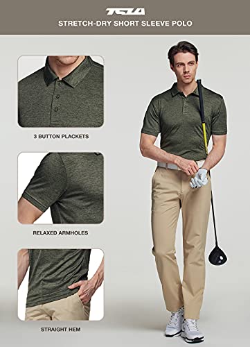 TSLA Polo da Uomo a Maniche Corte Premium Regular Fit Quick Dry Hi-Flex Active Tech, Uomo Bambino, Mtk40, Confezione da 1 - Verde Oliva, L