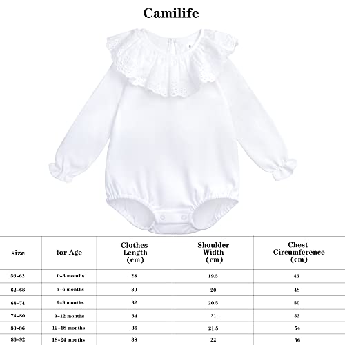 Bebè Body a Maniche Lunghe Camicia a Maniche Lunghe 100% Cotone con Collo a Balza Colletto da Bambola Moda Bambino Morbido Carino - Bianco Tinta Unita Taglia 3M