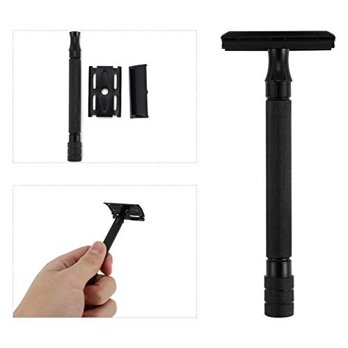 Nero Lungo Manico Doppio Bordo Rasoio di Sicurezza di Sicurezza In Acciaio Inox Tradizionale Rasoio Da Barba Barba Manuale Rasoio Non Inclusa