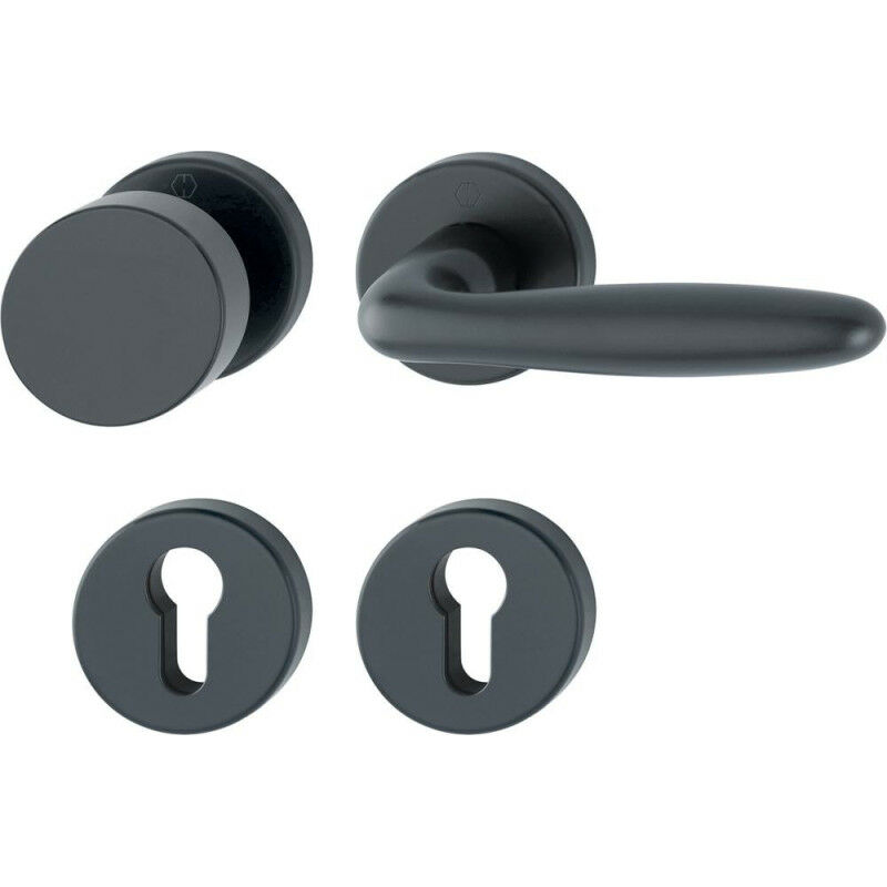 Fissaggio porta. Serie Verona 1510/42KB/42KBS - Set di rosette per porte interne in alluminio HOPPE QuickpinPlus (set di maniglie) - Testato secondo DIN EN 1906: 37-0140A. Set di oggetti - Conservazione: Maniglie delle porte sciolte. Molle di ritorno utilizzabili a destra/sinistra. Cuscinetti a strisciamento esenti da manutenzione - Rosette con sottostruttura in plastica e camme di supporto rinforzate in fibra di vetro - Fissaggio: rosette a spinta con camme di supporto continue. regolabile in continuo - Collegamento: Perno rapido HOPPE con perno pieno HOPPE (parte perno/foro) - Fissaggio con manicotto reciproco/ancoraggio del perno - Montaggio senza viti F1 = colore argento. F9714M = nero opaco.