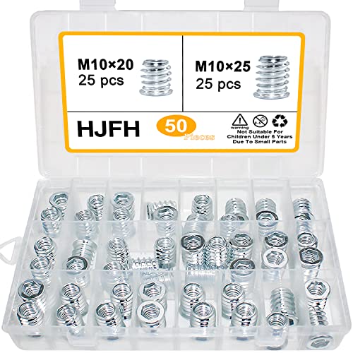 Dettagli Confezione: Ci sono una varietà di formati tra cui scegliere per soddisfare le tue esigenze. 50 pezzi Manicotto da Avvitare Filettato. M10*20mm(25pcs), M10*25mm(25pcs),Piccoli elementi include, si prega di tenere lontano da bambini piccoli.