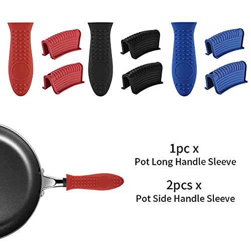 Set di 3 manicotti con manico in silicone e supporto per manico in silicone, supporto per manico caldo e presine per casseruole in metallo (rosso)