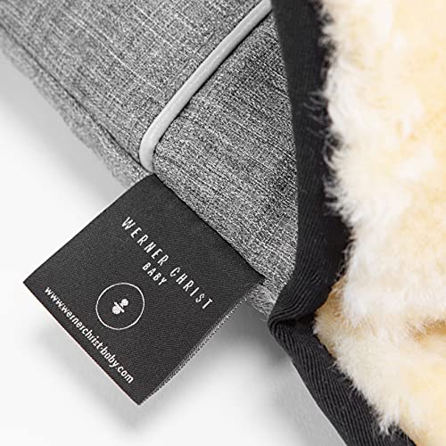 Manutenzione: il nostro manicotto per passeggino è lavabile in lavatrice con un detergente per pelliccia di agnello (consigliamo il marchio WERNER CHRIST C7) e adatto all'asciugatrice. Si prega di fare riferimento alle istruzioni di lavaggio allegate.