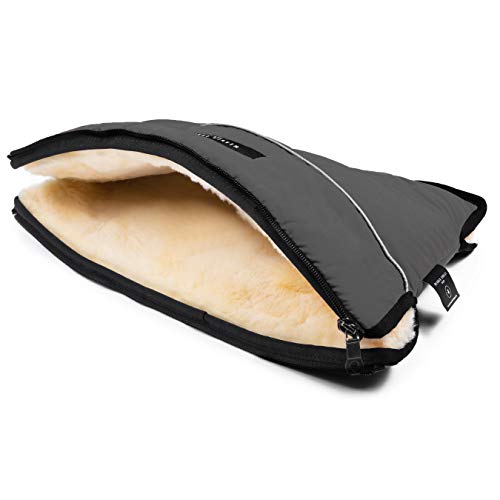 CARATTERISTICHE: La parte esterna del manicotto è realizzata in tessuto sportivo di alta qualità che protegge da vento e acqua. La parte interiore e al 100% in pelle di agnello naturale e morbida. Una striscia riflettente sulla parte superiore garantisce la sicurezza anche al crepuscolo e di sera. Misure: 47 cm x 24 cm (lunghezza fino al polso 30 cm).