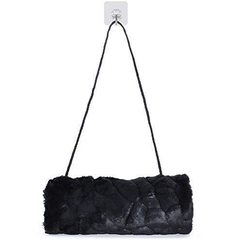 Manicotto Scaldamani, Pelliccia Sintetica Mano Muff of Strap Tasca Comodo Scaldamani Nero per Donna Uomo Bambini 1 pz, con Gancio Trasparente 1 pz