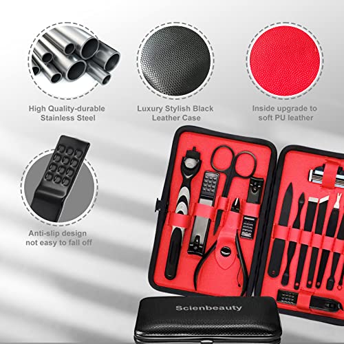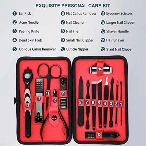 15 pcs Kit Manicure e Pedicure per Uomo, Scienbeauty Tagliaunghie Set Professionale con Box Grooming Kit Strumenti per Manicure, Pulizia Cuticole, Viaggi e Casa
