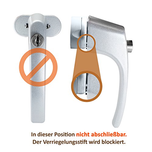 Maniglia in alluminio per finestra, con serratura, bianco/argento/argento scuro/oro/marrone, argento