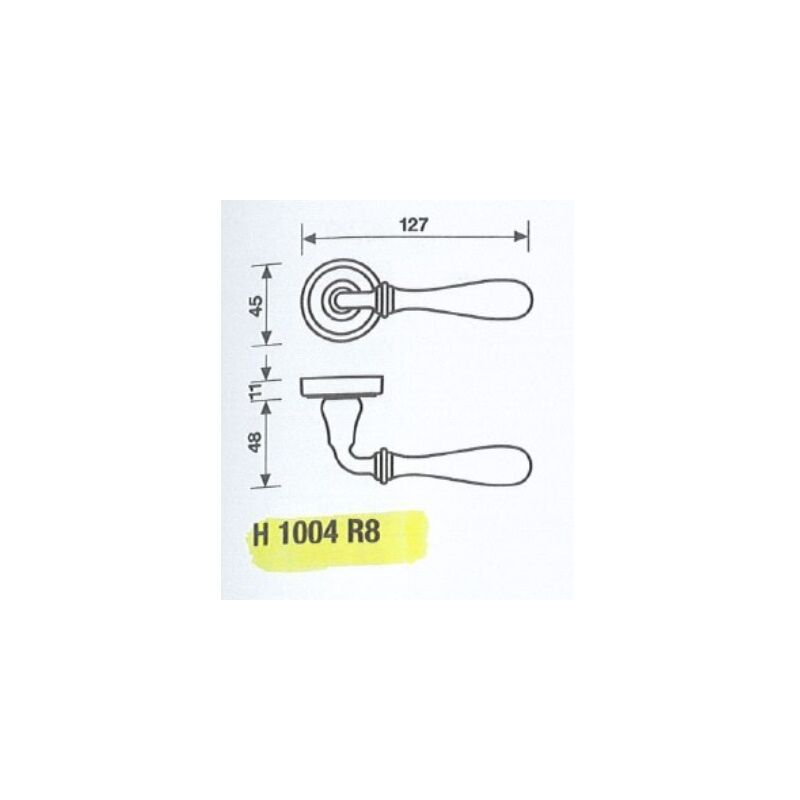Maniglia VALLI&VALLI serie ANTARES H1004 per porta interna in ottone oro lucido su rosetta con molla e bocchetta tonda foro patent.