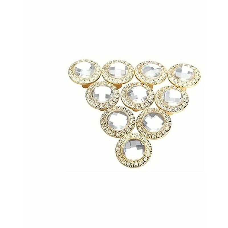 Un set di 10 maniglie in cristallo, 30 mm di diametro ciascuna, fornite con viti. Un cerchio di strass è incastonato intorno alla maniglia del mobile, donandogli tutto il suo splendore. I tiranti in cristallo dorato sono perfetti per armadi, cassetti, comò e altro ancora. Facili da installare, basta svitare il vecchio pomello e avvitare quello nuovo.