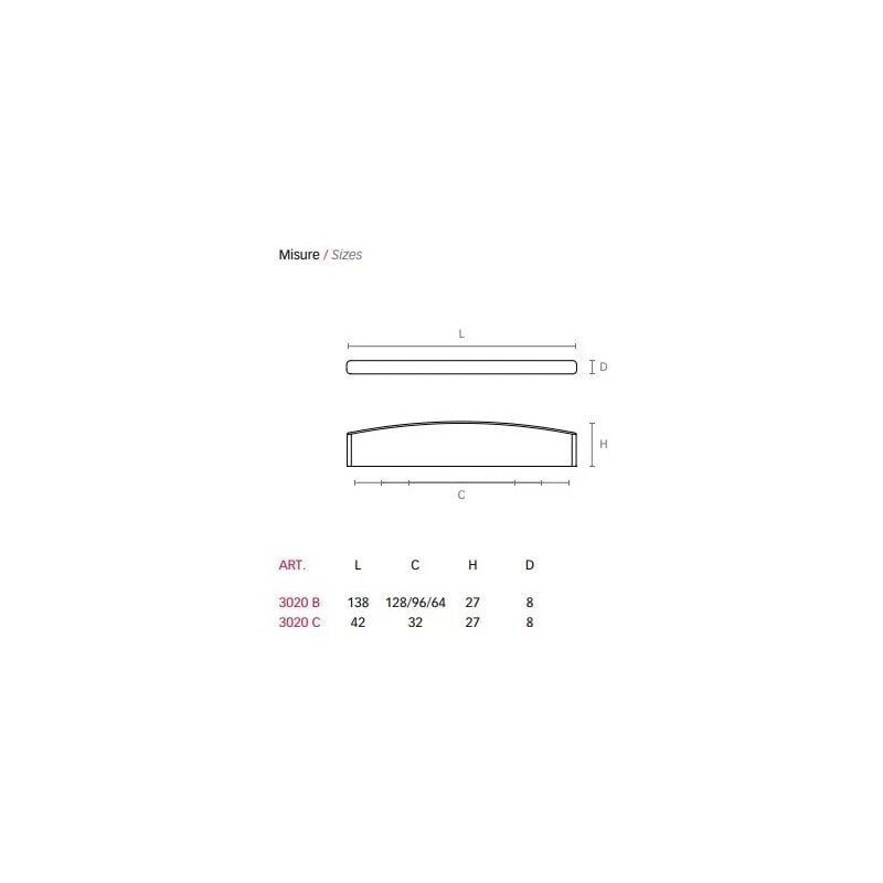 Maniglia per mobile in zama pressofusa interasse mm.128-96-64, completa di viti M4X25. Finitura cromo opaco.