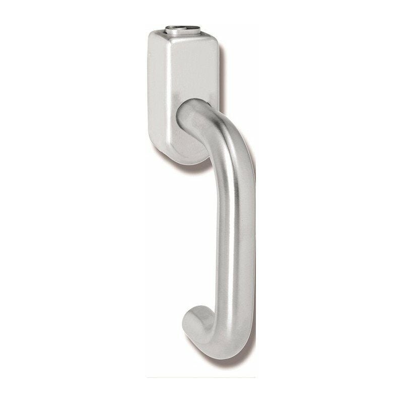 Für Fenster mit der Funktion Kippen vor Drehen · Edelstahl · Durchmesser 21,3 mm · 140 mm lang · mit 7 mm Vierkantstift · der Fenstergriff erfüllt die Vorgaben der DIN 18040 · Rosette mit Metallunterteil 75,5 x 33 mm · mit Stützzapfen · mit integriertem Druckzylinder · mit 5 Stiftzuhaltungen · Oberfläche des Fenstergriffes und der Rosette matt geschliffen · im Auftragsfall bitte die genaue Stiftlänge angeben Weitere technische Eigenschaften: · Grifflänge: 140mm · Nocken-Ø: 10mm · Lochabstand: 43mm · Sockelstärke: 21mm · Anschlagrichtung: DIN links · Vierkant: 7mm · Prüfung: DIN EN 13126 Teil 3 DIN EN 1627 - 1630 RC1 - RC6