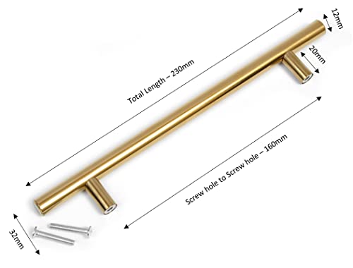 Maniglia a T con finitura dorata, per cucina, camera da letto, bagno (20, fori centrali 160 mm)