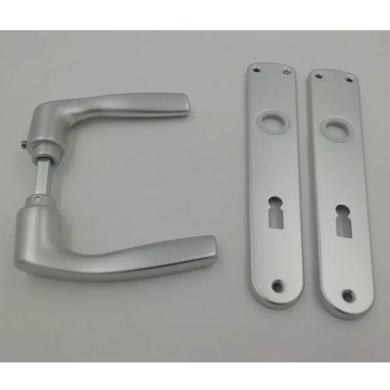 Maniglia GPB GABRY in Alluminio Argento, foro Patent su placca con distanza dal quadro maniglia al foro chiave mm 90 La confezione comprende 2 Maniglie e il ferro quadro di collegamento ( foto ) Misure: Maniglia 115 mm Altezza Placca 206 mm Larghezza placca 42 mm Distanza quadro maniglia / centro chiave 70 mm Colore: Alluminio Argento