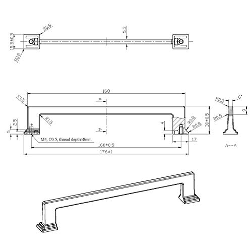Lunghezza: 176 mm / altezza: 30 mm / larghezza: 15,5 mm (staffa della maniglia: 5,3 mm) / distanza fori: 160 mm