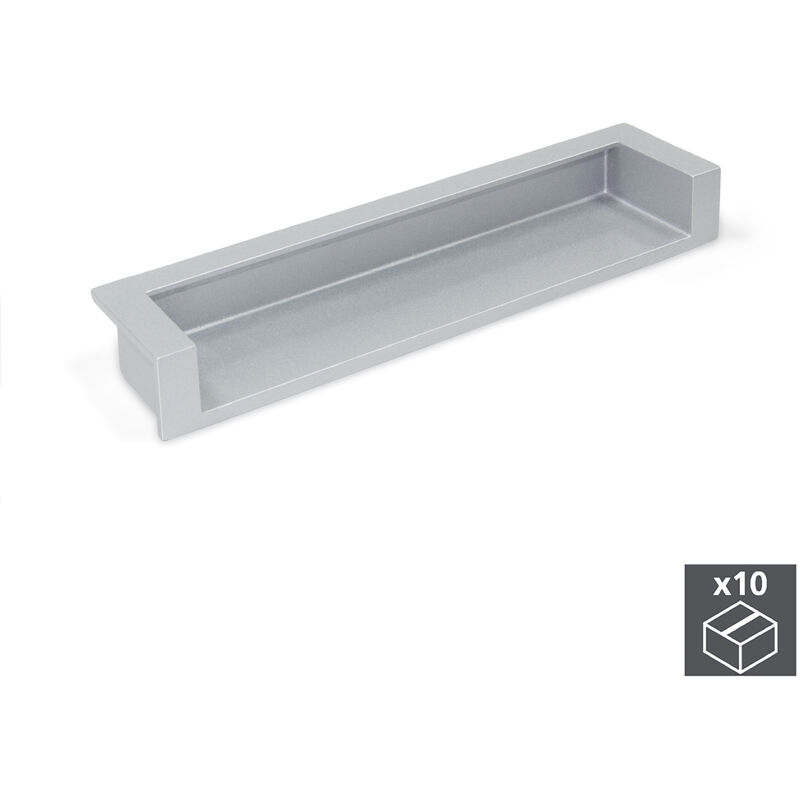 La maniglia per mobile Modena � prodotta in zama con finitura verniciata alluminio . Ha un design moderno e contemporaneo e pu� essere installata tanto in orizzontale che in verticale. E' pensata per ongi tipo di cassetto ed anta d'armadio . E' una maniglia ideale per mobile da cucina, casa, bagno ed ufficio . Per l'installare questa maniglia ad incasso nel cassetto o nell'anta � necessario realizzare un foro e in tutti i casi ci servir� un trapano. Le viti M4 per il montaggio sono incluse. Ogni maniglia � imballata individualmente per evitare colpi o graffi. Lotto di 10 maniglie. Consigliato per pannelli con uno spessore da 17 a 22 mm. L'installazione richiede una lavorazione di 134,5x26,5x13,5 mm. Vedere gli schizzi di montaggio. Ideale per interassi (distanza tra fori di montaggio) 128 mm. Realizzato in zama con finitura verniciata alluminio. Ogni pezzo confezionato singolarmente per evitare graffi. Viti M4 per il fissaggio compresi. 10 maniglie, viti per il montaggio 128 mm