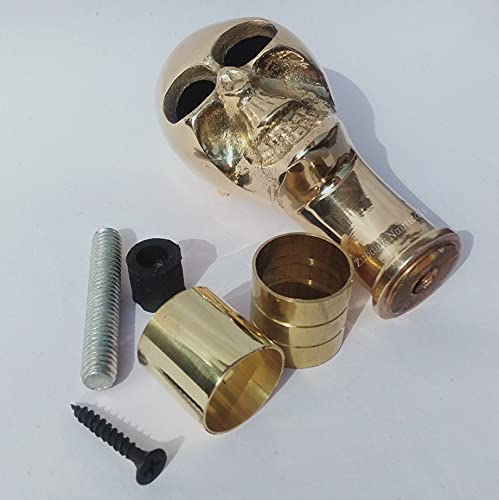Maniglia in ottone massiccio antico con testa a forma di teschio per bastone da passeggio