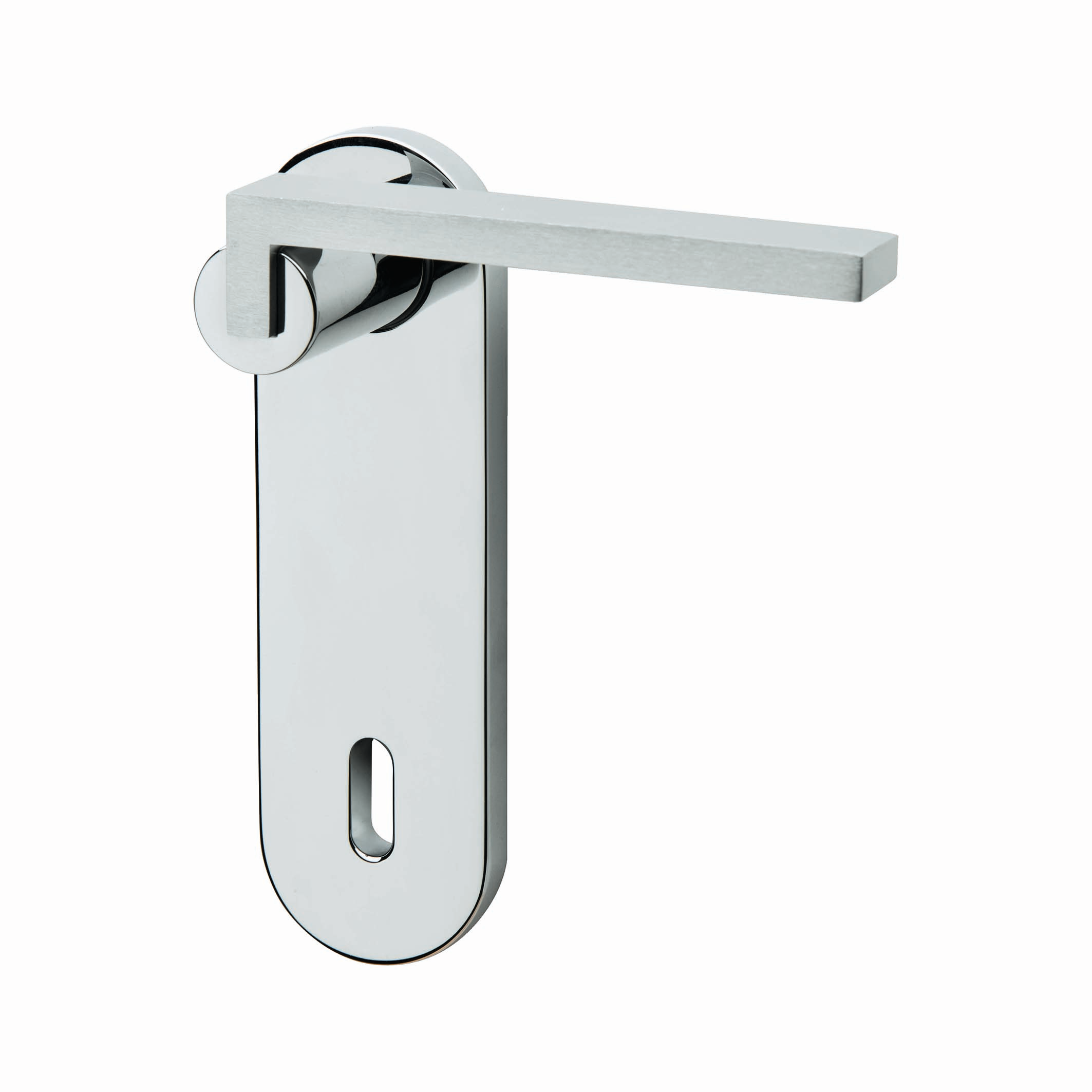 Maniglia con placca in Alluminio Lucido. Indicata per porta da interno battente con serratura patent