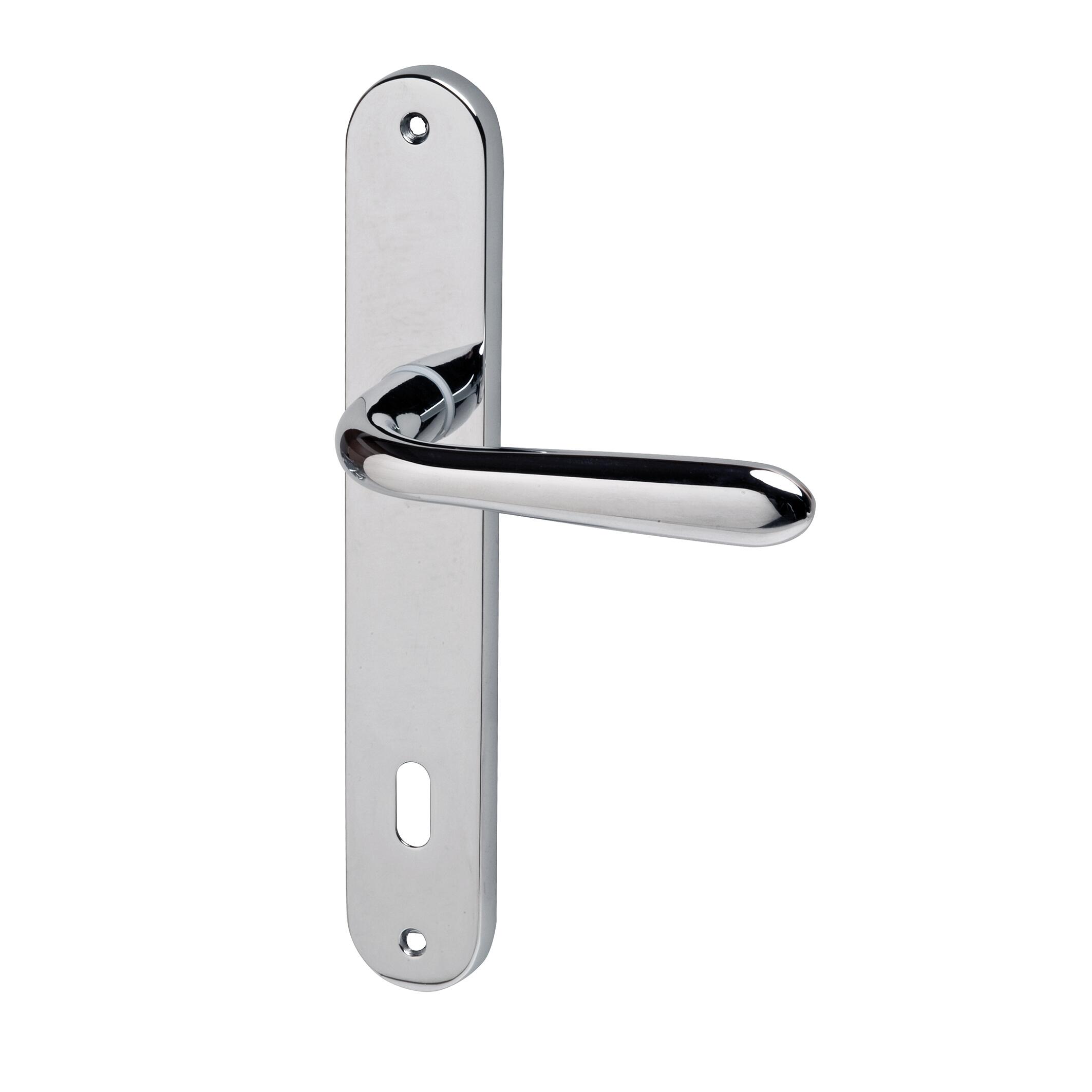 Maniglia con placca in Zama Cromato. Indicata per porta da interno battente con serratura patent