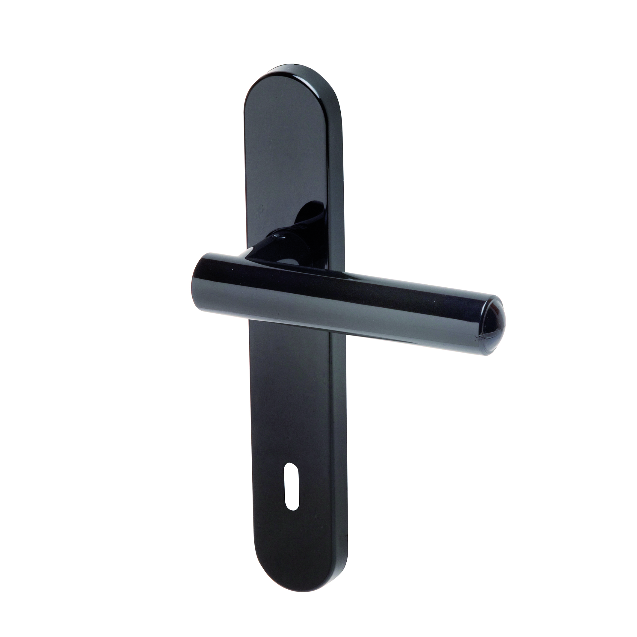 Maniglia con placca in Plastica Lucido Nero. Indicata per porta da interno battente con serratura patent