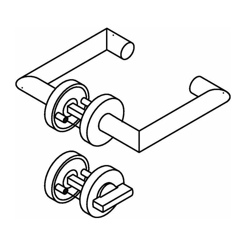 In tecnologia H con rosette secondo DIN 18255 e DIN EN 1906 in acciaio inossidabile, composto da: maniglia porta modello 165X in tubo rotondo in acciaio inossidabile in taglio mitra (1.4301), diametro 21,3 mm con spessore parete da 1,5 mm, con guida di attacco e scanalatura di blocco, con vite in vermi M5 come fissaggio aggiuntivo delle maniglie delle porte con il perno quadrato per una trasmissione ottimale della potenza nell'anta della porta. Montaggio semplicemente agganciando le maniglie delle porte nelle parti inferiori preassemblate sulla porta. Il detent può essere risolto di nuovo per mezzo di una chiave di smontaggio. Il pusher soddisfa i requisiti di DIN EN 179. La sottostruttura in rosetta macinata opaca nella costruzione in composito di acciaio plastico con superficie in zinco/nichel nero per una protezione ottimale dalla corrosione, modulo integrato ad alta tenuta con supporto a molla, DIN a sinistra e DIN a destra può essere utilizzato, per supportare la serratura per