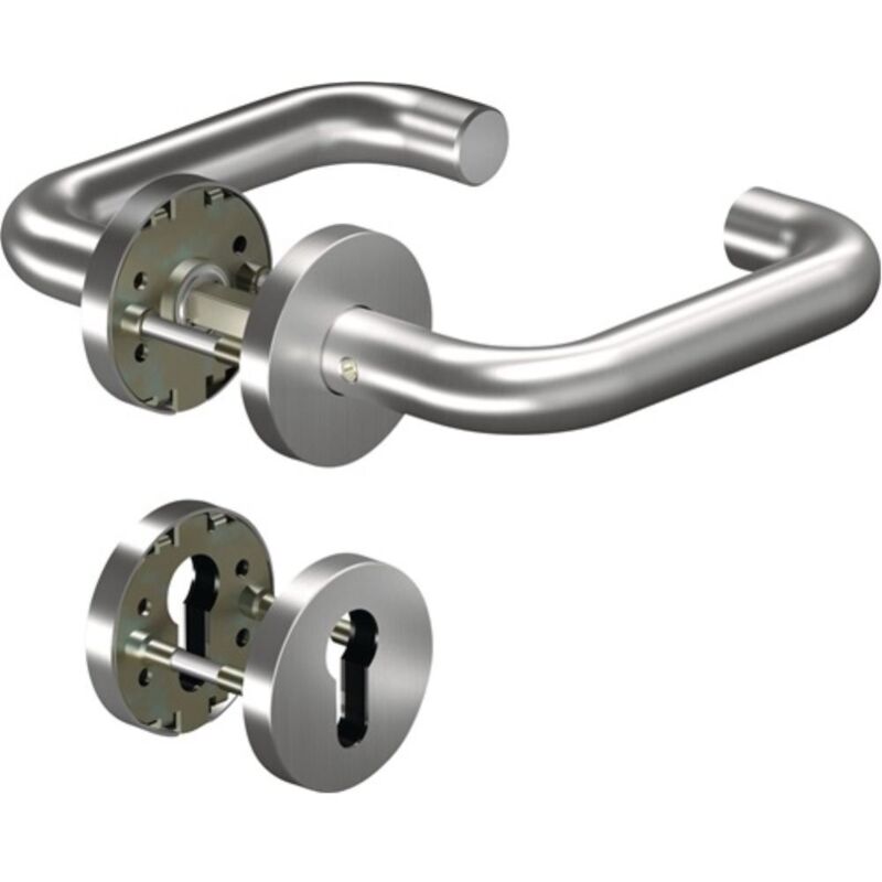Set rosone antincendio · DIN sinistra / destra · Quadrato 9 mm · Set di pulsanti = pulsante su entrambi i lati / set intercambiabile = pulsante esterno 3020 · per spessore porta 38-63 mm Consegna come set completo Ulteriori caratteristiche tecniche: · Supplemento: D/K · Norma: EN 179 · Cuscinetto: fisso / fisso-girevole · Quadrato: 9mm. Versione: Set intercambiabile, Materiale: Acciaio inox, Superficie: opaca, per spessore porta: 38 - 63 mm, Classe utente: 4, Perno: 115FS, Coperchio: rotondo, Spessore lama: 9 mm, Lunghezza pulsante: 143 mm, Tipo: Rosone, Attacco spintore: Perno intercambiabile, Profondità pulsante: 64 mm, Forma: Pulsante piatto, Marchio: OGRO, Ø: 55 mm, Direzione di arresto: DIN sinistra / destra, Colore n.: ER, Perforazione: PZ, Modello: 8100/3020/6501/6612. Versione: Set intercambiabile, Materiale: Acciaio inossidabile, Superficie: opaca, per spessore porta: 38 - 63 mm, Classe utente: 4, Penna: 115FS, Coperchio: tondo, Spessore lama: 9 mm, Lunghezza pulsante: 143