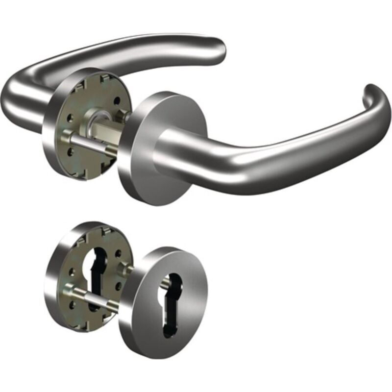 DIN sinistra / destra · Quadrato 8 mm · Set di pulsanti = pulsante 8999 su entrambi i lati / set intercambiabile = pulsante esterno 3020 / pulsante interno 8999 · per spessore porta 38-63 mm / WC = 37-42 mm · testato secondo DIN EN 1906 ( categoria d'uso classe 4 ) Consegna come set completo Ulteriori caratteristiche tecniche: · Lunghezza spintore: 138mm · Sistema di montaggio: Pin standard · Supplemento: D/K · Profondità di spinta: 62mm · Pulsante: piatto · Distanza tra le camme: 38mm · Colore: ER · Standard: DIN 1906. Materiale: acciaio inossidabile, Design: Set intercambiabile, Superficie: opaca, Perforazione: PZ, Classe utente: 4, Spessore lama: 9 mm, Forma: rotonda, Marca: OGRO, Direzione di arresto: DIN sinistra / destra, Rosone Ø: 55 mm, Quadrato: 8 mm, Modello: CORE8999 8 mm / 3020N/6501/6612 PZ ER, per spessore porta: 38 - 63 mm, Altezza rosone: 9 mm. Materiale: Acciaio inossidabile, Design: Set intercambiabile, Superficie: opaco, Perforazione: PZ, Classe utente: 4, Spessore