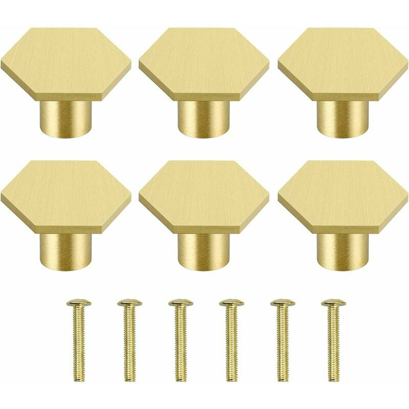 Il pomello per porta Material-Hexagon è realizzato in ottone massiccio, durevole, dalla struttura completa, impermeabile e antiruggine.< /li> Dimensioni e quantità: il pomello della porta in ottone massiccio misura circa 30 x 21 x 14 mm Design esagonale - La maniglia della porta adotta uno stile moderno e semplice con un design geometrico su sei lati, adatto a diverse decorazioni di mobili per la casa. Facile da installare: il nostro pacchetto include 6 accessori a vite per installare facilmente le maniglie delle porte e non è necessario acquistare accessori aggiuntivi. Ampiamente usato - Ideale per cassetti e ante di armadi, perfetto per bagno, cassettiera, guardaroba, camera da letto, soggiorno, cassetto. >Questo bellissimo pomello per porta ha un rivestimento spazzolato. Più adatto a qualsiasi stile di anta dell'armadio. Caratteristiche: La maniglia della porta in plastica In ottone massiccio è lisci, non arrugginiscono facilmente, puoi usarli a lungo. La decorazione a sei lati