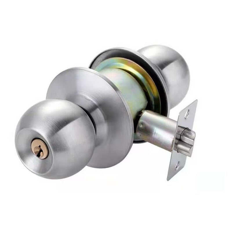 Maniglia per porta in acciaio inossidabile satinato (chiusura a chiave). Facile da montare, il fermo regolabile può essere spostato indietro di 70 mm. Adatto per porte di spessore da 35 mm a 50 mm. Blocca i pomelli interni ed esterni per impedire l'ingresso indesiderato nella stanza. Include anche un set di tre chiavi che consentono la chiusura dall'esterno. Ideale per le porte delle camere da letto o qualsiasi altra porta interna che richieda privacy.