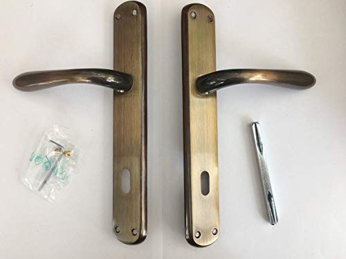 Maniglia per porta sidney 1126 p in maritech bronzo graffiato, foro patent, con placca interasse mm.90 completa per una porta dentro+fuori, con molla di ritorno viti di fissaggio comprese
