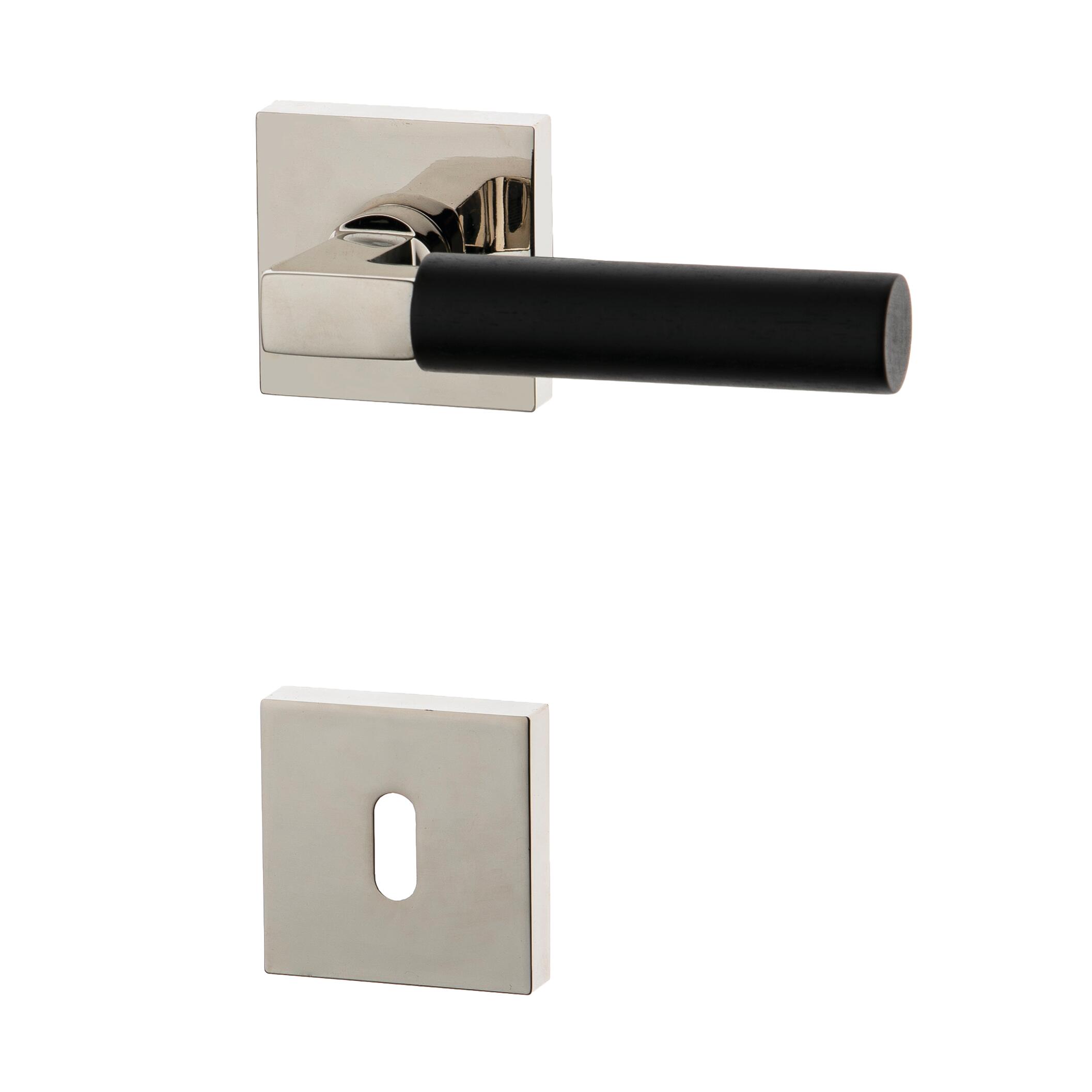 Maniglia con rosetta e bocchetta in Ottone Cromato lucido. Indicata per porta da interno battente con serratura patent