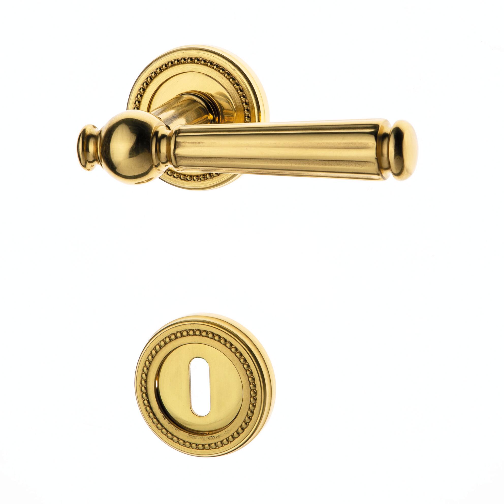 Maniglia con rosetta e bocchetta in Ottone Dorato. Indicata per porta da interno battente con serratura patent