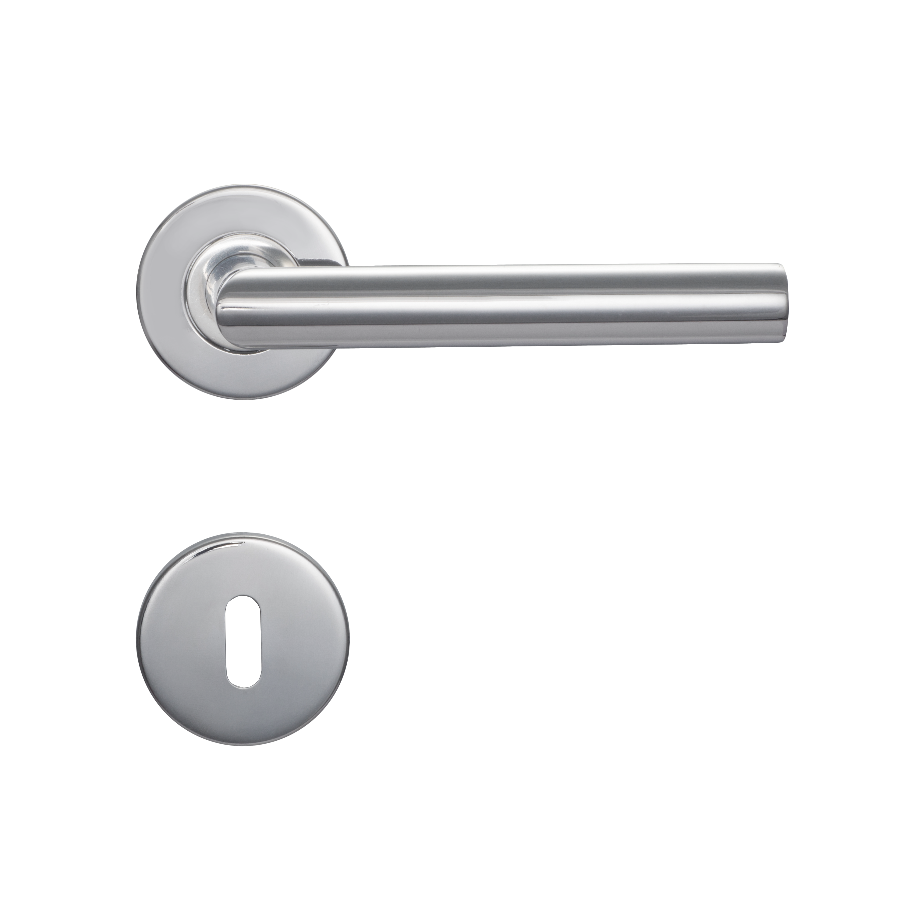 Maniglia con rosetta e bocchetta in Acciaio Spazzolato. Indicata per porta da interno battente con serratura patent