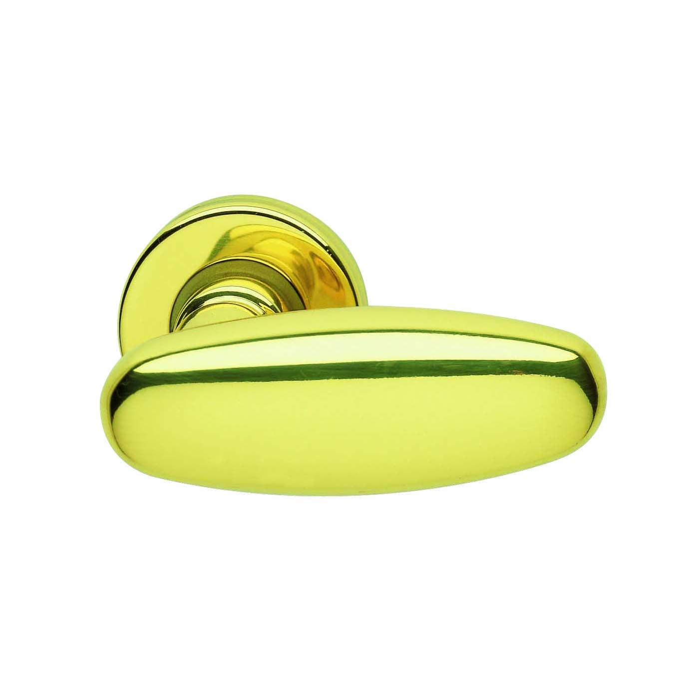Maniglia su rosetta in Ottone Lucido. Indicata per porta da interno battente con serratura patent