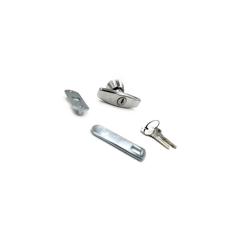 Maniglia per sportelli metallici, impugnatura cromata, diametro mm.21, lunghezza mm.14, rotazione 90', leva piana mm.48.