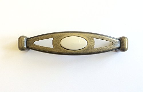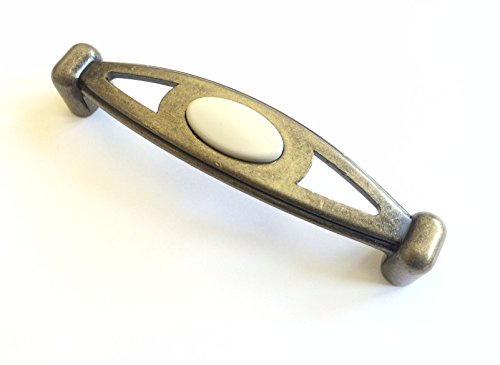 Maniglia in stile classico per cassetti mobili armadi cucine finitura ottone antico con inserto avorio e distanza tra i fori 96 mm, cod. 842