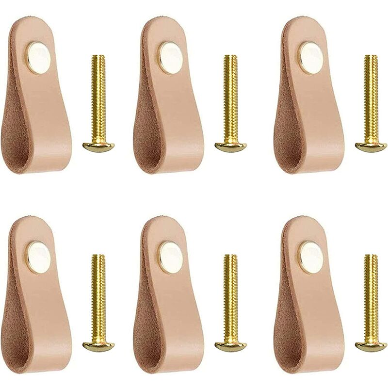 colore: color carne. Facile da installare: basta praticare un foro nel mobile e serrarlo con un cacciavite. Multifunzionale: tutti i tipi di mobili, porte, armadi, cassetti, armadi, armadi, bella decorazione. Le maniglie in pelle sono perfette per i tradizionali armadi singoli. Specifiche: La lunghezza della vite è di 22 mm/0,866 pollici, adatta per ante di spessore 12-19 mm. Larghezza manico in pelle: 22 mm/0,98 pollici, lunghezza 60 mm/2,32 pollici.