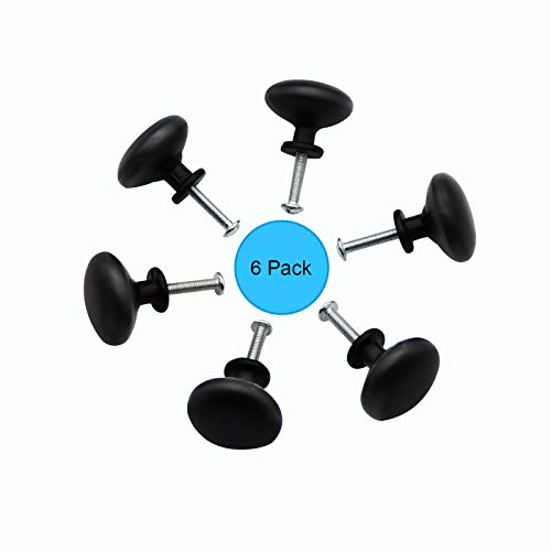 NA NA Maniglie per armadi, 30 mm rotonde di cassetti, 6 maniglie nere per cassetti con viti per bagno, cucina, maniglia a foro singolo per porta, armadio