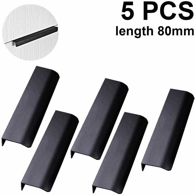 Descrizione del prodotto Materiale: lega di alluminio Colore: nero Distanza tra i fori: 64 mm Lunghezza totale: 80 mm Quantità: 5 pezzi Contenuto della confezione: 5 * maniglia in alluminio per armadio 1.【DESIGN】- La maniglia è realizzata in lega di alluminio, design curvo senza spigoli vivi, nessun rischio di lesioni e nessuna impronta digitale. 2.【DIMENSIONE】- Distanza tra i fori: 64/160mm;