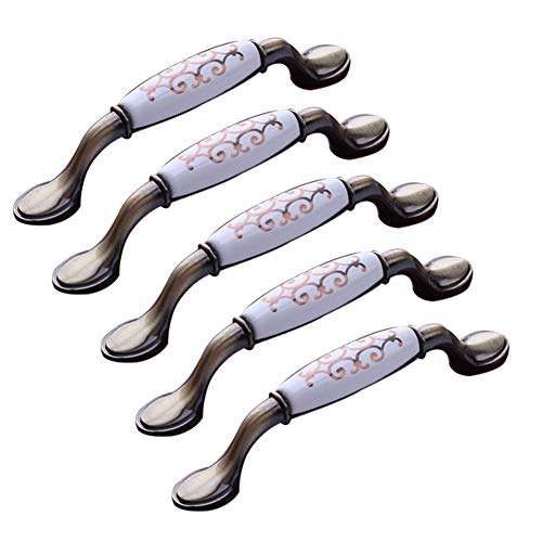 5 maniglie in ceramica per porta di mobili, maniglie vintage per porte, in lega di alluminio, con gancio dorato (128 mm)