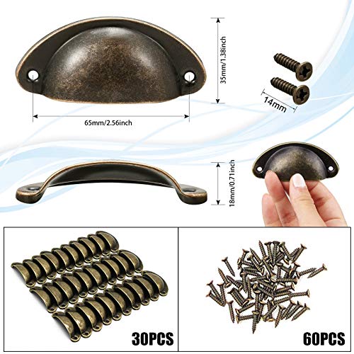 30 pz Maniglie Conchiglia Vintage Bronzo,Maniglia del Cassetti Shell Manopole del Porta Cassetto per Ante di Armadietti e Cassetti da Cucina,con Viti+Cacciavite