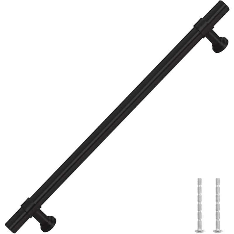 Queste maniglie per i mobili, caratterizzate da un design vintage, conferiranno un tocco di eleganza agli armadietti della vostra casa. Materiale resistente: La maniglia per l'anta realizzata in acciaio inossidabile durevole con una finitura a polvere, resistente alla corrosione e alla ruggine. Ampie applicazioni: La maniglia per i cassetti adatta a vari mobili, cassetti, credenze, guardaroba, armadietti, casse di legno, e cos via. Pratico design: La maniglia per gli armadietti presenta un design a forma di T per facilitare la presa. Inoltre, stata appositamente progettata con connessioni strette, per cui non c' bisogno di preoccuparsi di cadute o allentamenti. Vite tagliabile: La vite in bamb tagliabile per adattarsi a diversi spessori di pannelli in base alle vostre esigenze. Colore: Nero Materiale: Acciaio inox con finitura verniciata a polvere Dimensioni: 256 x 32 mm (L x A) Diametro del tubo: 12 mm Spaziatura dei fori centrali: 192 mm Spessore del pannello adatto: 12-36 mm